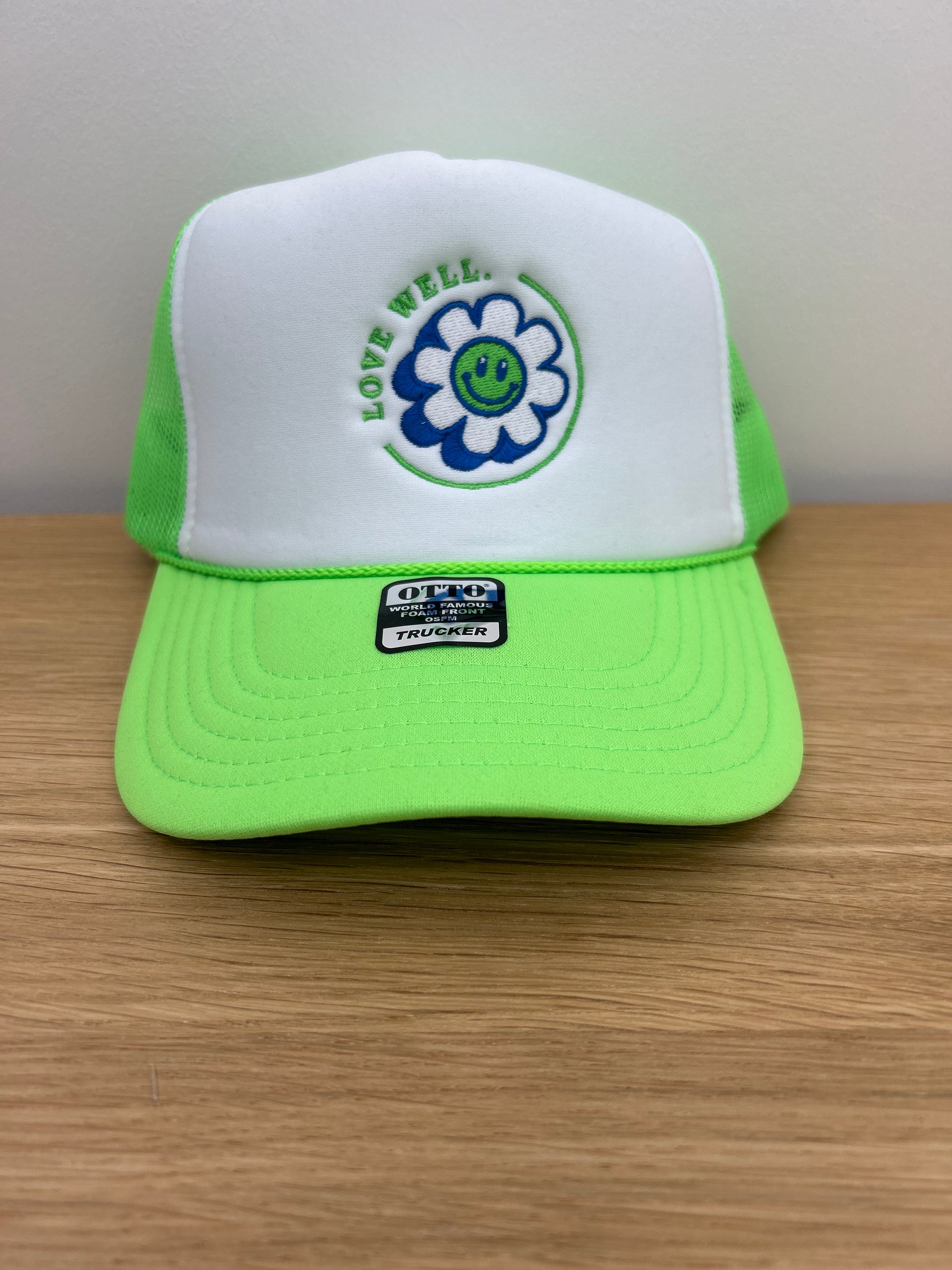 The Foam Trucker Hat, available in multiple color combos with out smiley flower logo this effortless style with all-day comfort. Its mid-weight fabric and relaxed fit make it a versatile piece, ideal for layering or wearing on its own. The washed finish adds a chic, lived-in touch, making this hoodie perfect for casual outings or cozy days at home. A must-have for any wardrobe looking for that perfect mix of style and practicality. Material: 60% Cotton, 40% Polyester Embroidered Logo