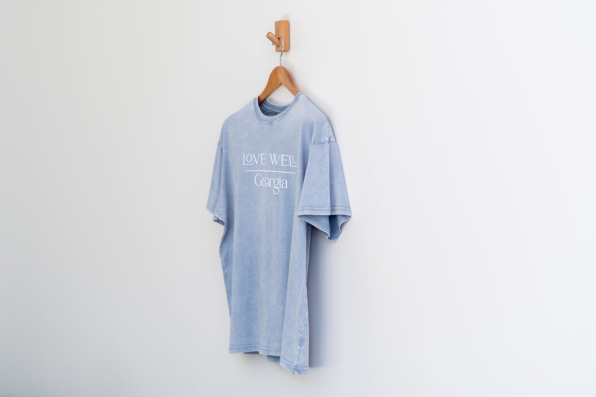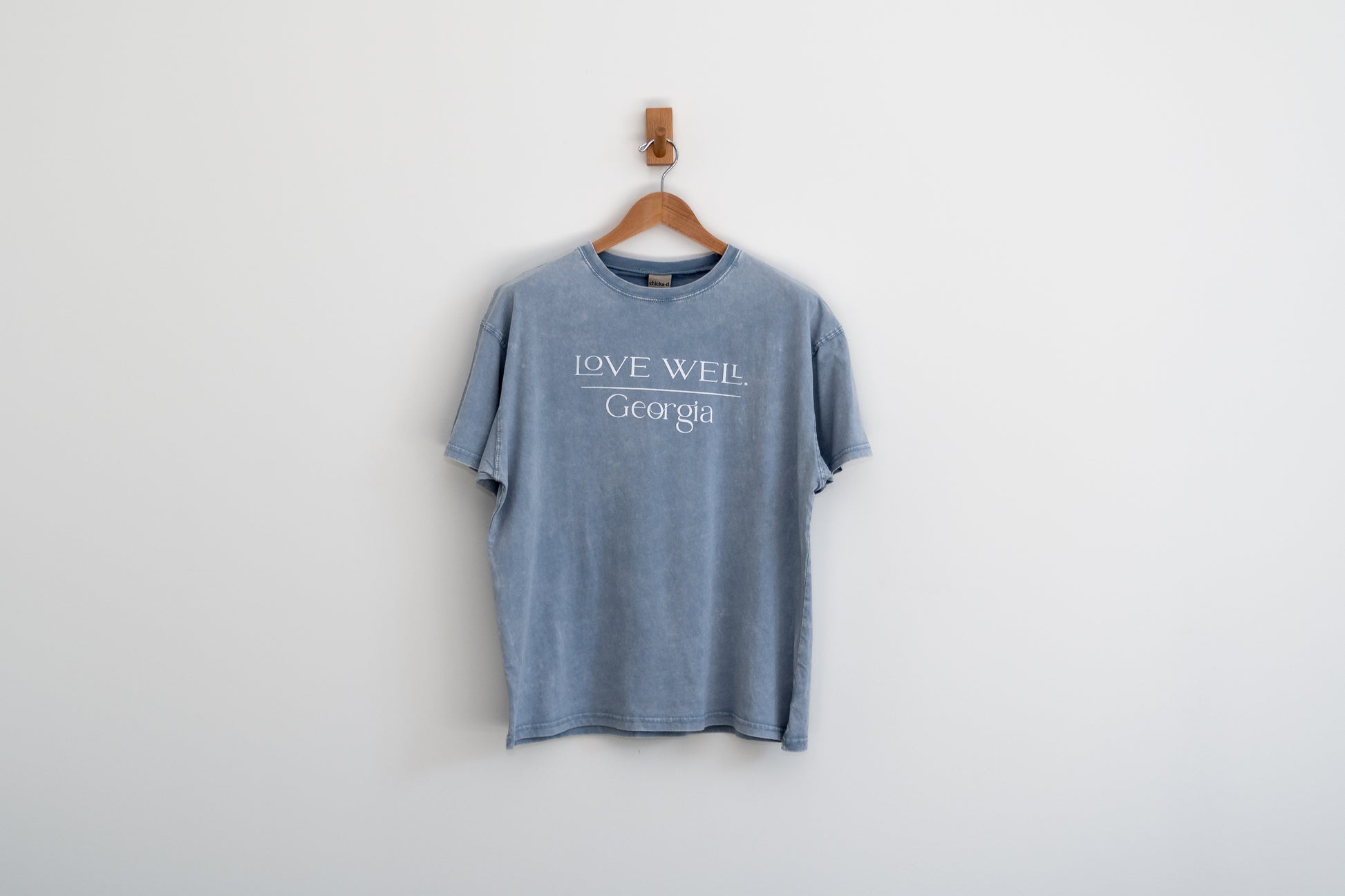This faded demim tee will soon become your favorite - it is the softest one we've seen in a very long time and that's saying something for a company that loves soft!! It's an oversized feel and comes S/M and L/XL. Colors will vary due to the faded individual treatment of each garment. 100% Cotton.