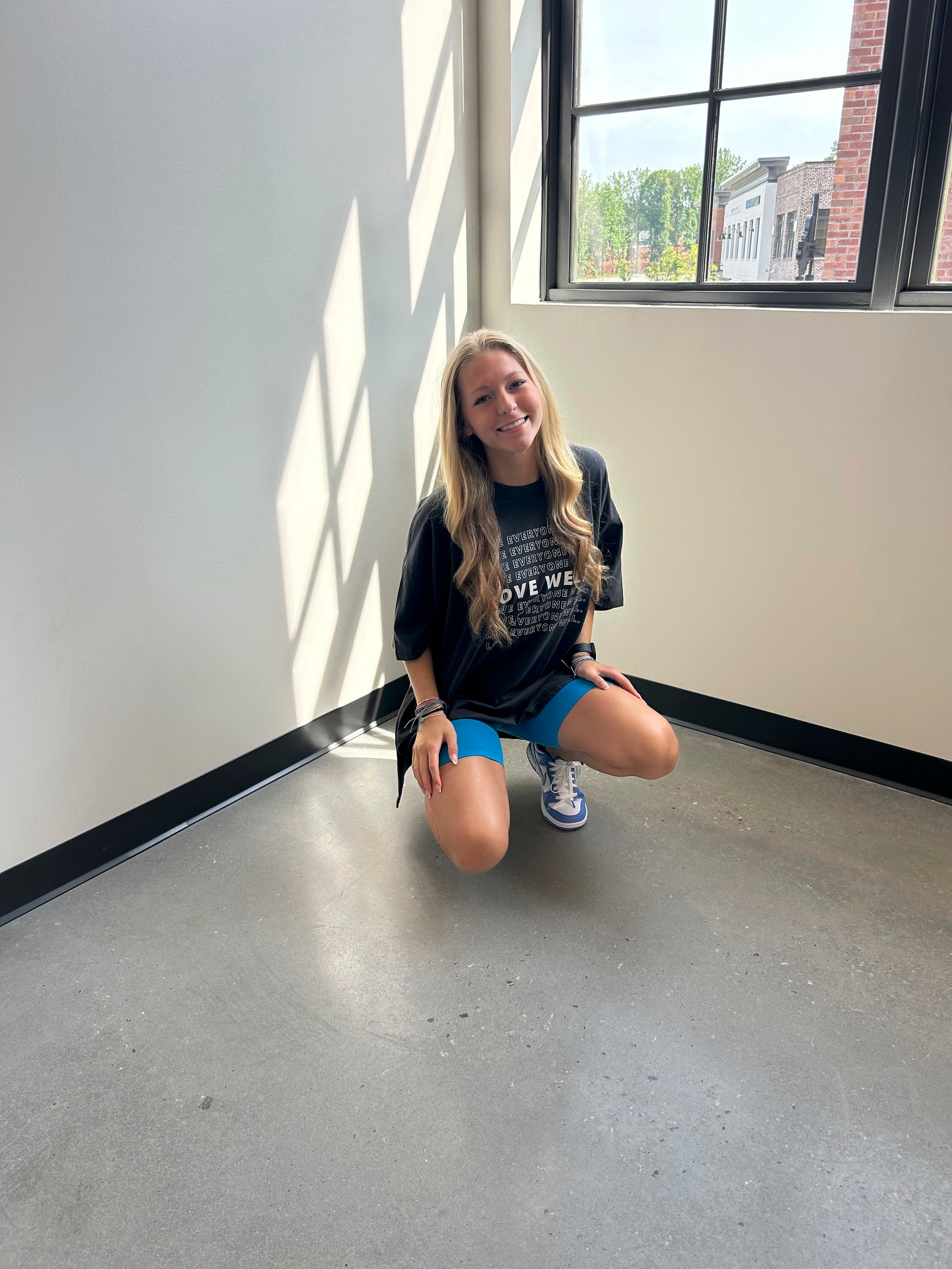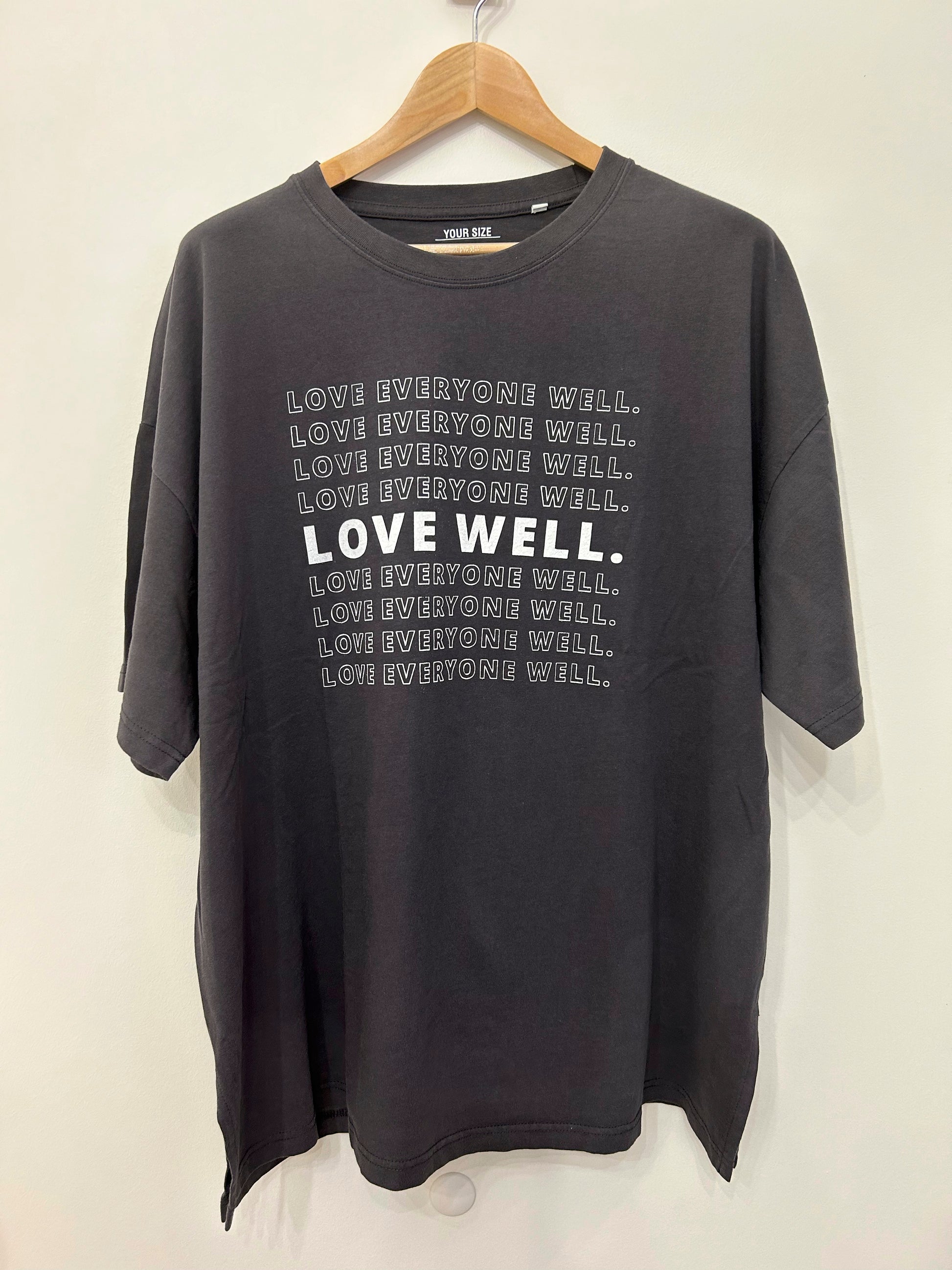 This is OG love well. It says it all in a fun, repeating vintage print on a one size, oversized tee. You can style this one a million ways. This is the same as our white oversized and it is the best!! back in limited quantities. Get yours while they last.